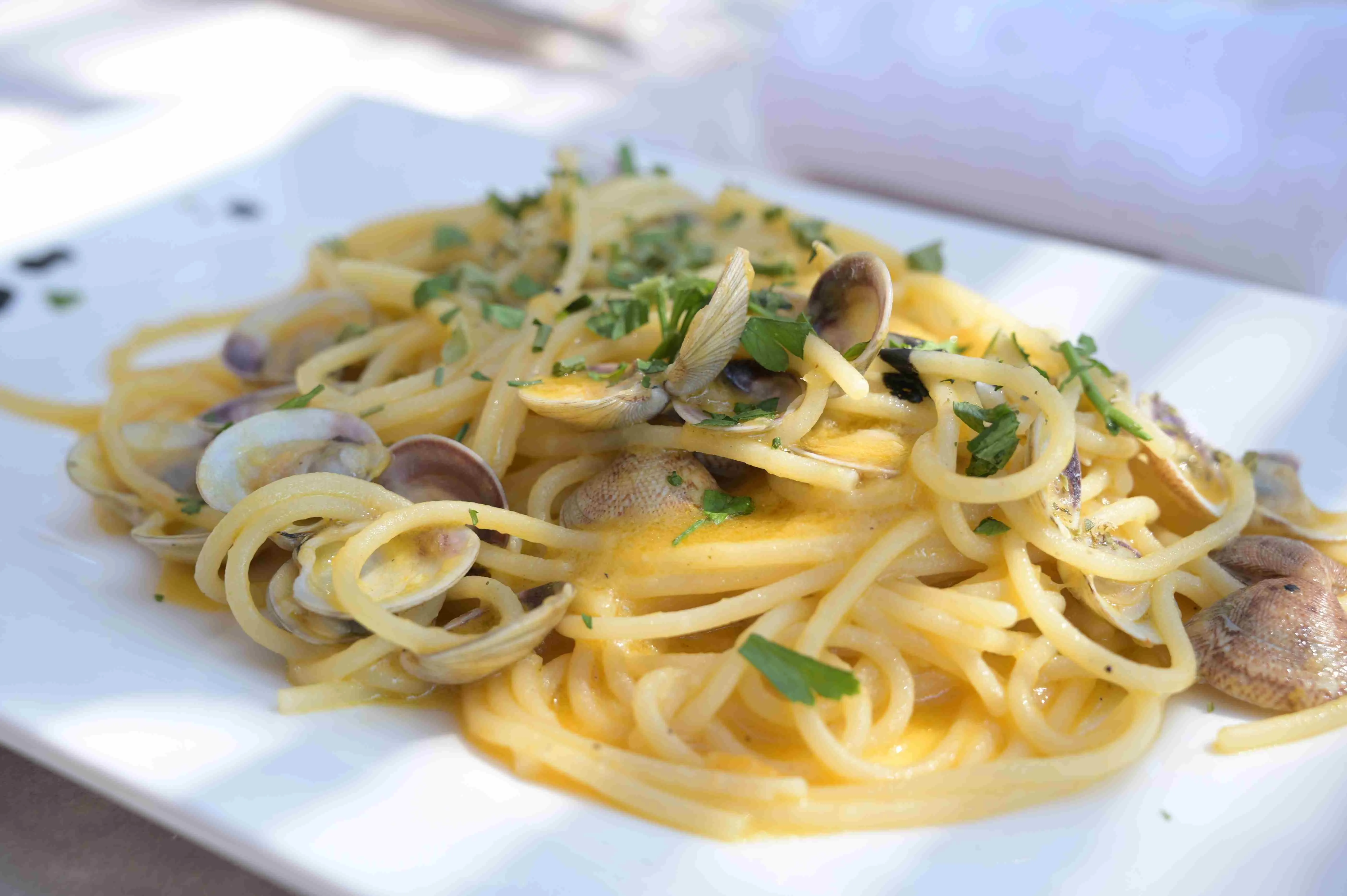Linguini In A Red Wine Marinara And Garlic Sauce With Fresh Chopped Clams And Basil.